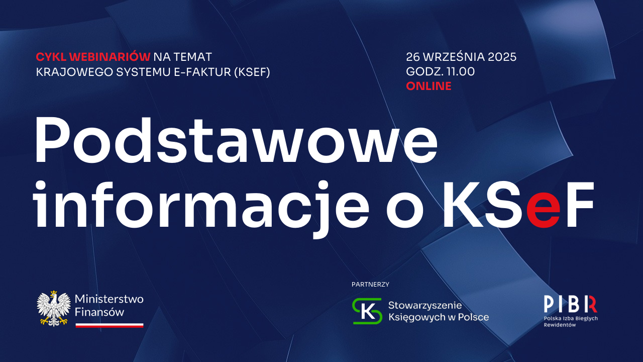 oraz Polska Izba Biegłych Rewidentów (PIBR), zaprasza na bezpłatny cykl webinariów poświęconych Krajowemu Systemowi e-Faktur