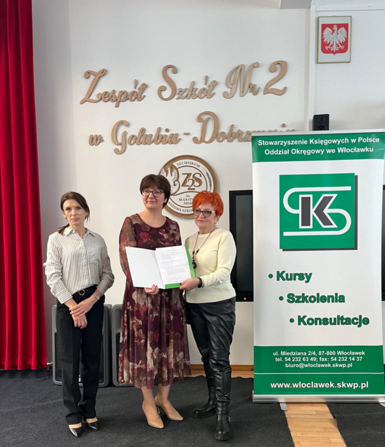 Podczas spotkania Dyrektor Pani Agnieszka Brzostowska przyjęła dyplom poświadczający, że Zespół Szkół nr 2 w Golubiu-Dobrzyniu jest „Sygnatariuszem Kodeksu Zawodowej Etyki w Rachunkowości”.